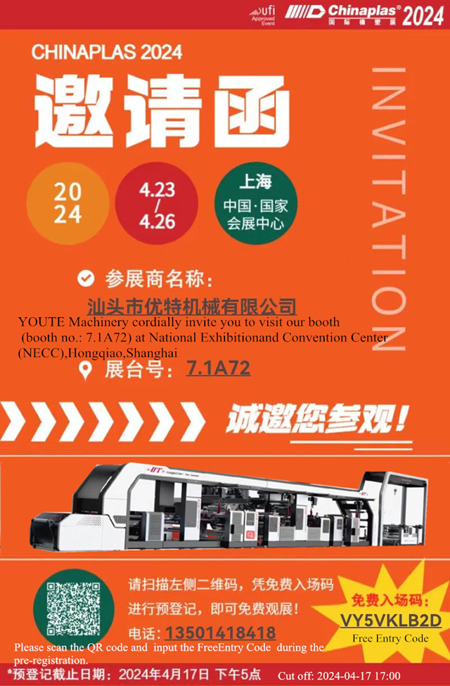 優(yōu)特機(jī)械 與您相約2024年CHINAPLAS 國(guó)際橡塑展